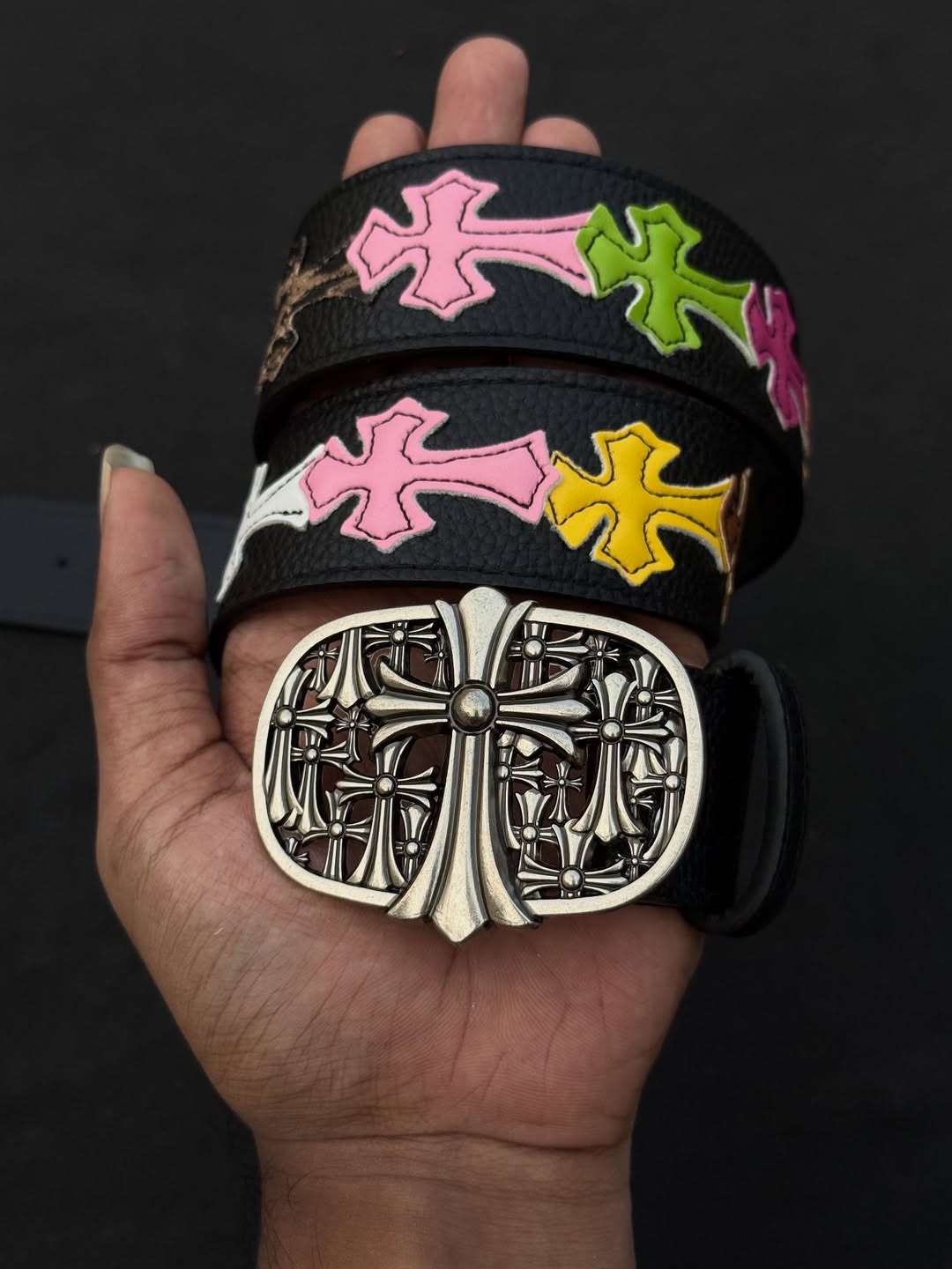 Level up your outfit with our Chrome Cross Leather Belt, designed for people who want to stand out without even trying. This belt features a high-quality metal buckle with an intricate chrome cross design, paired with colored cross patches along the strap for a bold, artistic finish. Whether youโre rocking it with jeans, cargos, or a clean fit, this belt instantly upgrades your style.